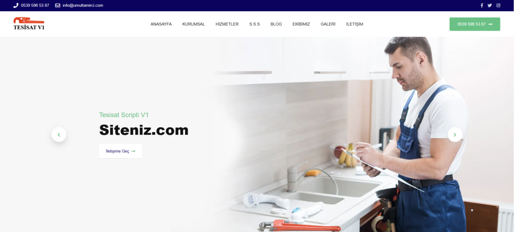İşinizi bir üst seviyeye taşımaya hazır mısınız? Tesisatçılık hizmetlerinizi çevrimiçi ortama taşıyarak daha geniş bir müşteri kitlesine ulaşın. Sunduğumuz profesyonel tesisatçı web sitesi, sizin ve işletmenizin ihtiyaçlarına uygun olarak tasarlanmıştır. Kullanıcı dostu arayüzü ve modern tasarımı ile müşterilerinizin dikkatini çekin ve hizmetlerinizi etkili bir şekilde sergileyin.